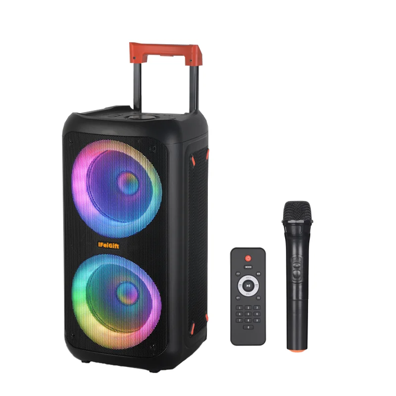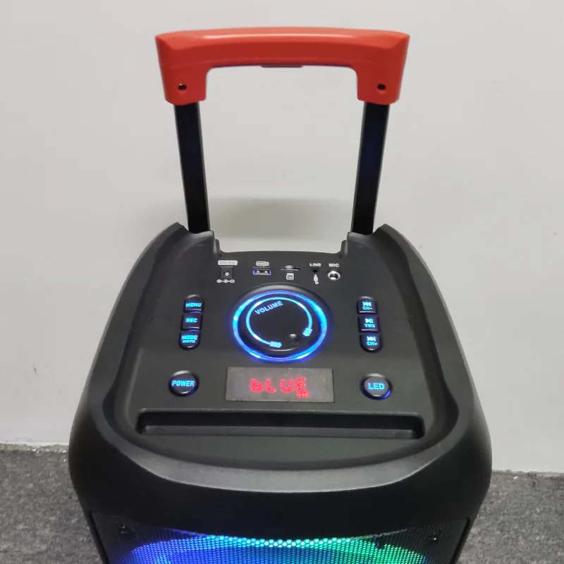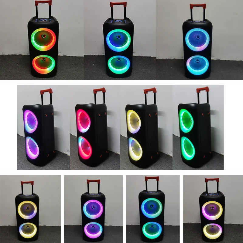 0808L New Wireless Portable Speaker Dual 8inch Horn Speaker Big TWS trolley Speaker With AdapterFunction/Application USB/FM/TF/BT/LED light/AUX Battery capacity 3000MAH Colors Black Carton Size 335*335*625mm Carton QTY 1 PCS Carton G.W. 7KG